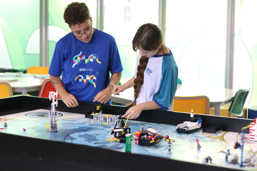 Desde 2020, nossos alunos cruzam a linha de chegada do campeonato STEM Racing, projeto internacional realizado pela própria Fórmula 1. Durante o torneio, os estudantes do Sesi criam uma escuderia do zero, que funciona como uma micro-empresa, pensando em estratégias de marketing, finanças e até na criação dos carrinhos, que são usinados em impressoras 3D e movidos por C02. O desafio fica ainda maior pois os possantes devem seguir uma série de especificações técnicas, colocando os conhecimentos de física e matemática à prova para acelerar na pista!